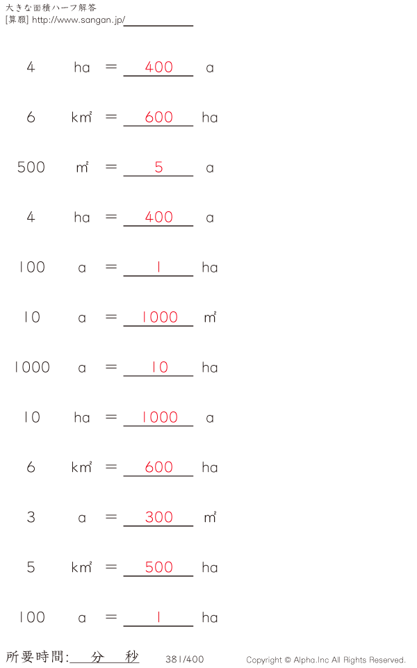 大きな面積・アール・ヘクタール@12 [解答]381/400