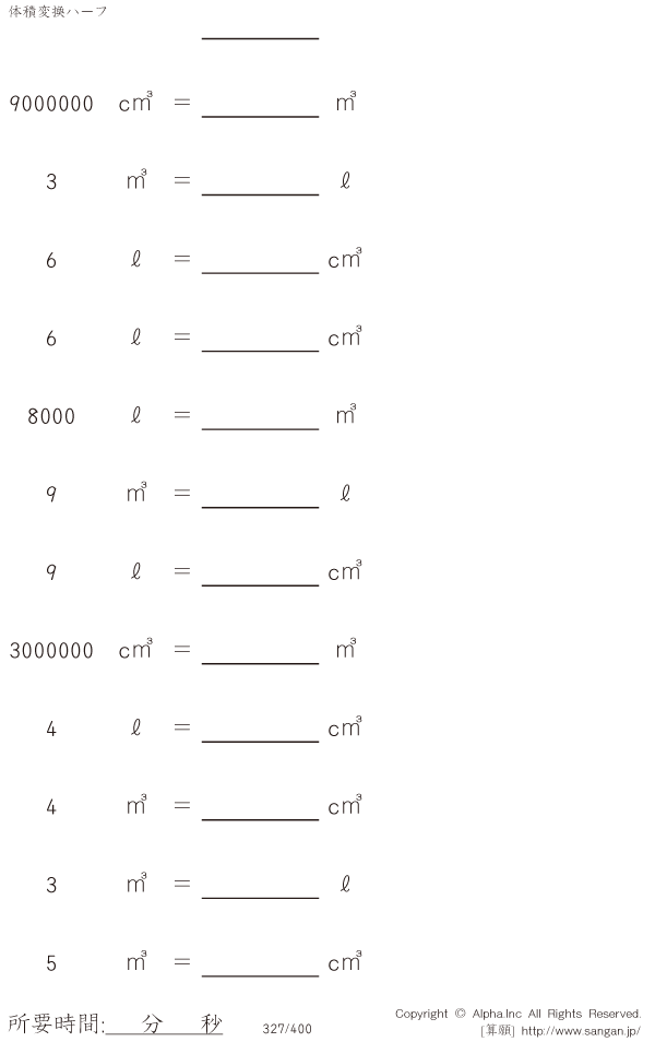 上記のボタンから「体積変換@12」の算数数学ドリル・計算ドリル(PDFプリント)がダウンロードできます。個人利用は無料です(家庭以外での配布は有料です)。