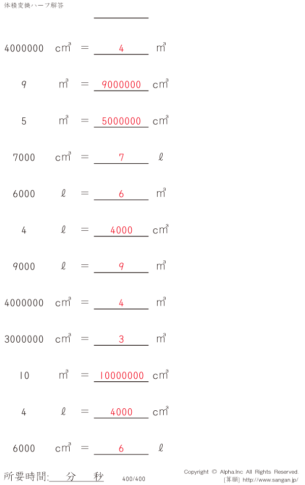 上記のボタンから「体積変換@12」の算数数学ドリル・計算ドリル(PDFプリント)がダウンロードできます。個人利用は無料です(家庭以外での配布は有料です)。