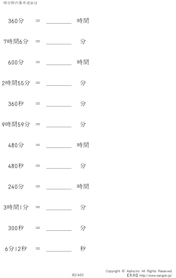 時分秒の基本逆@12 [問題]082/400