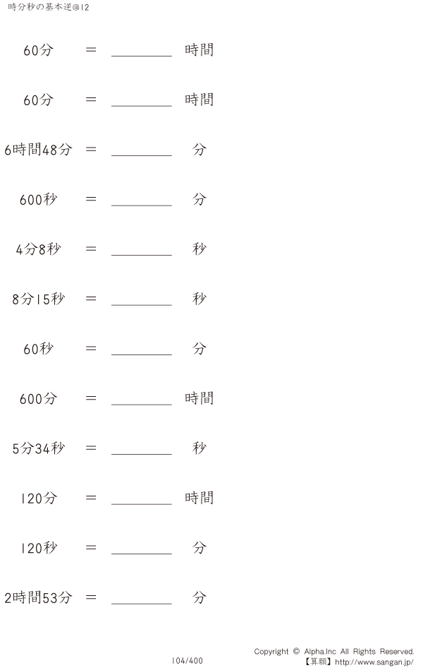 時分秒の基本逆@12 [問題]104/400
