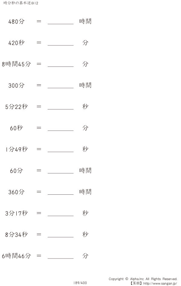 時分秒の基本逆@12 [問題]189/400