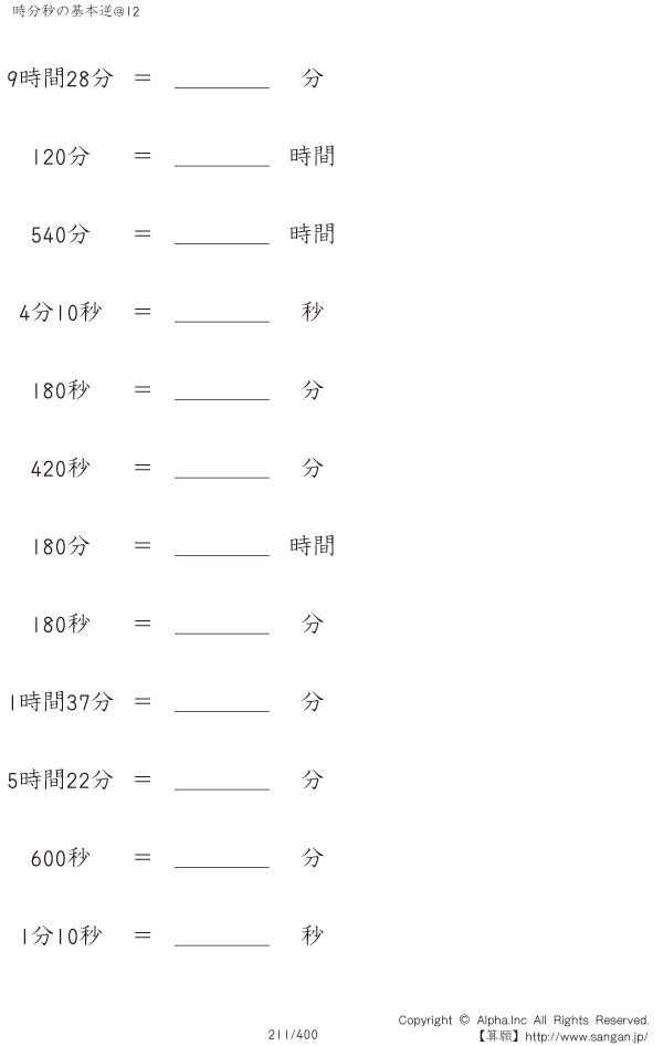 時分秒の基本逆@12 [問題]211/400