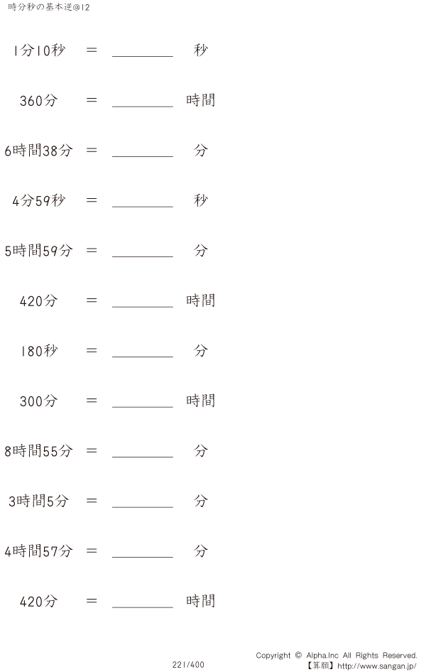 時分秒の基本逆@12 [問題]221/400