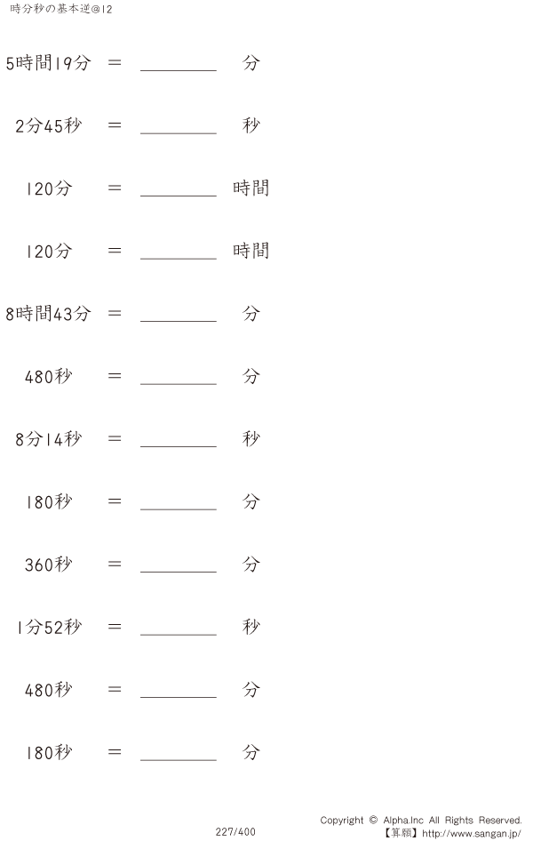 時分秒の基本逆@12 [問題]227/400