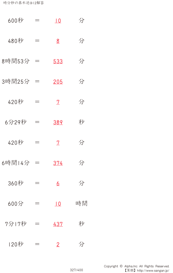 時分秒の基本逆@12 [解答]327/400