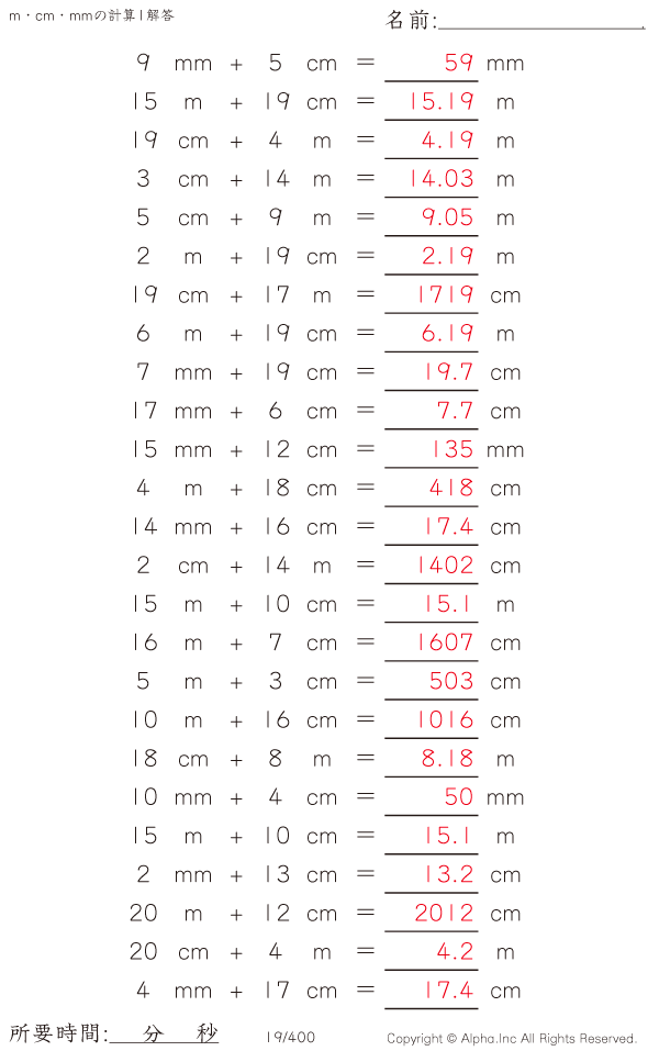 上記のボタンから「m・cm・mmの足し算1」の算数数学ドリル・計算ドリル(PDFプリント)がダウンロードできます。個人利用は無料です(家庭以外での配布は有料です)。