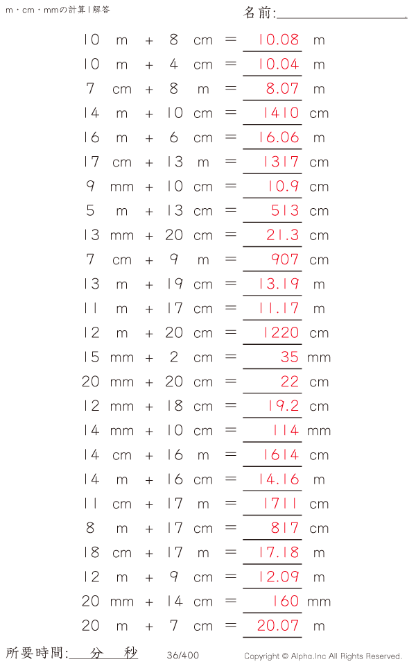 上記のボタンから「m・cm・mmの足し算1」の算数数学ドリル・計算ドリル(PDFプリント)がダウンロードできます。個人利用は無料です(家庭以外での配布は有料です)。