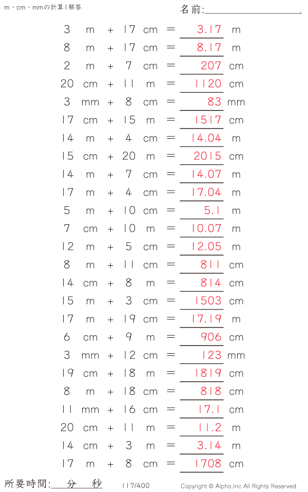 m・cm・mmの足し算1 [解答]117/400
