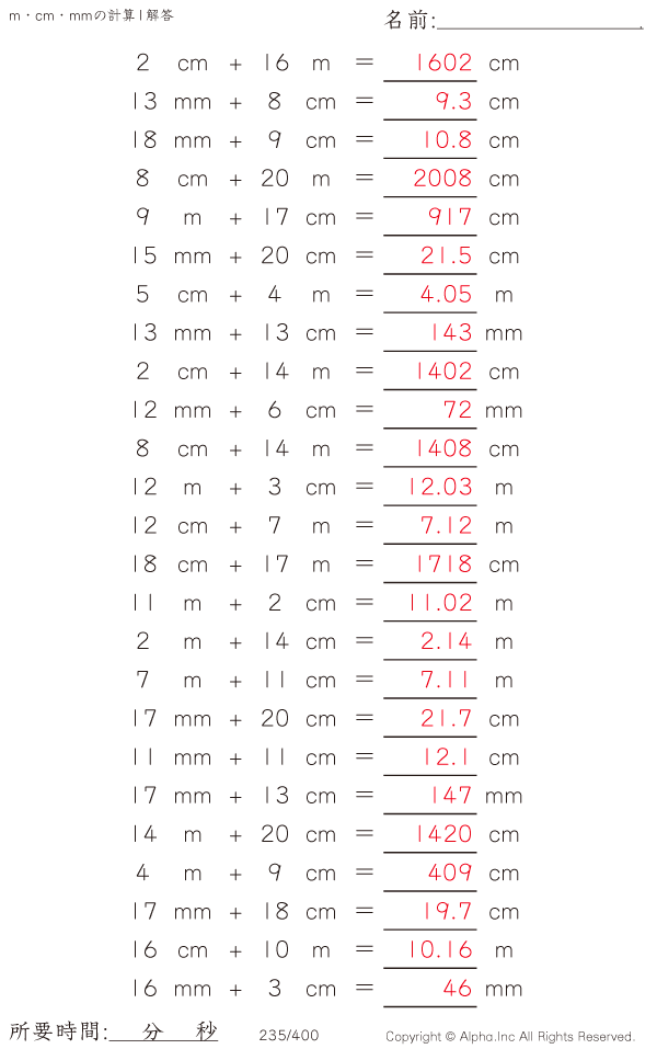 m・cm・mmの足し算1 [解答]235/400