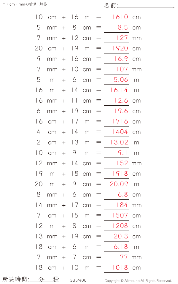 m・cm・mmの足し算1 [解答]335/400
