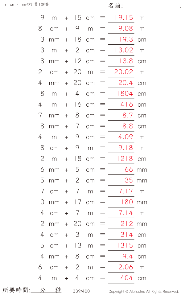 m・cm・mmの足し算1 [解答]339/400