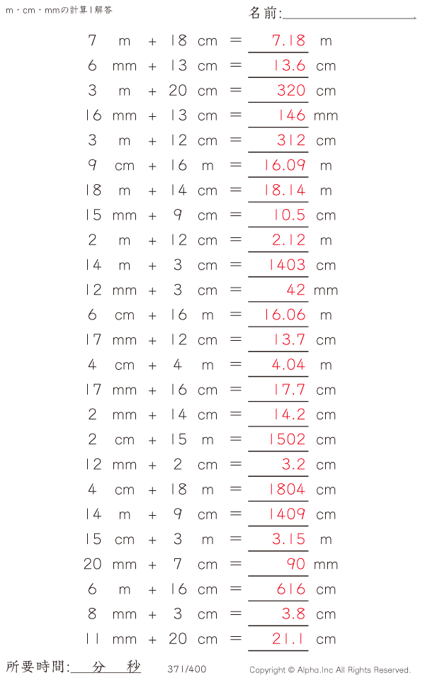m・cm・mmの足し算1 [解答]371/400