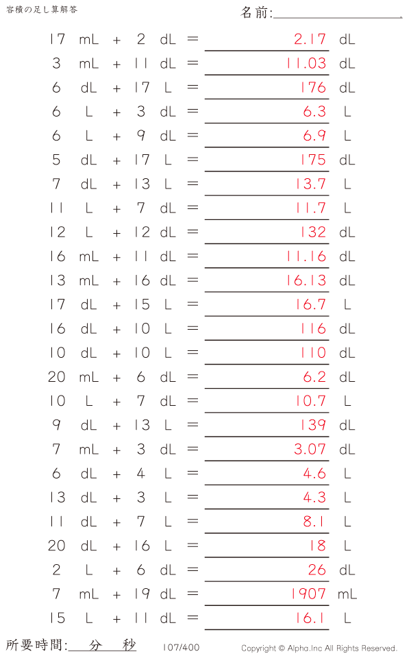 上記のボタンから「容積の足し算」の算数数学ドリル・計算ドリル(PDFプリント)がダウンロードできます。個人利用は無料です(家庭以外での配布は有料です)。