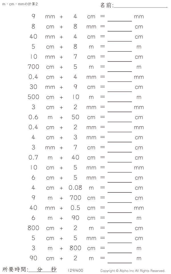 m・cm・mmの足し算2 [問題]129/400