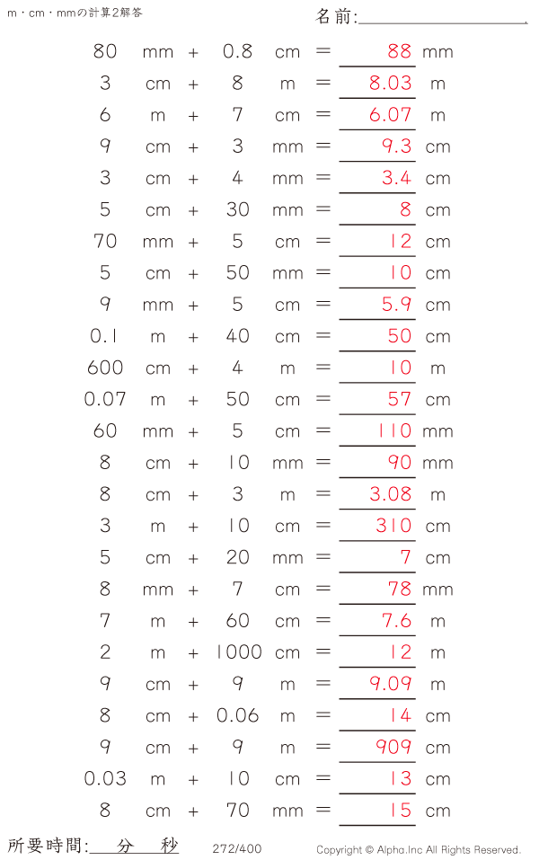 m・cm・mmの足し算2 [解答]272/400