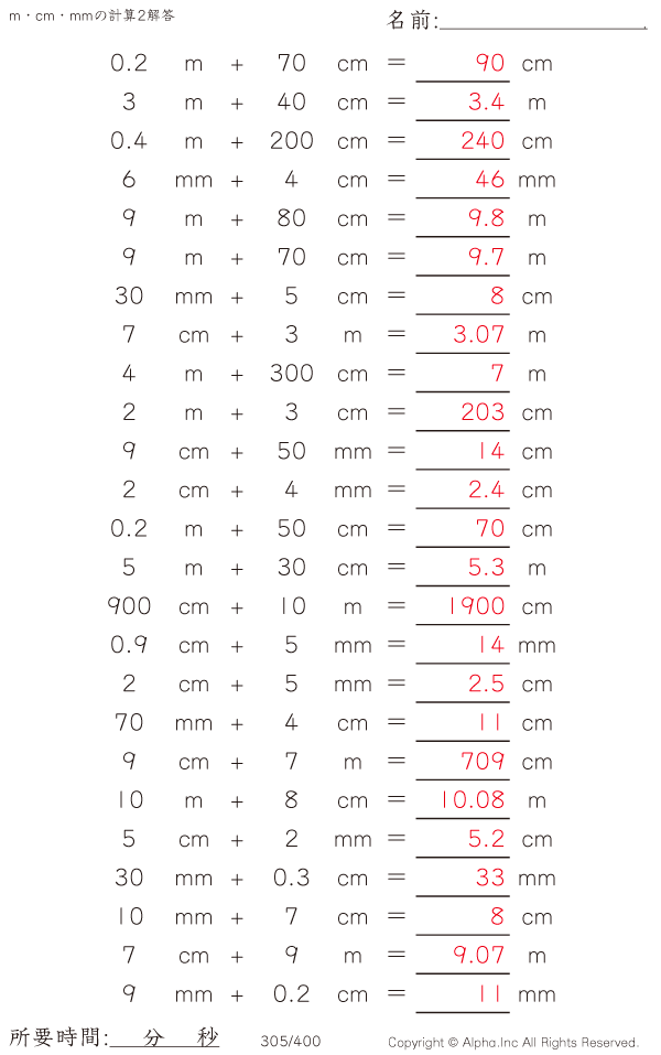 上記のボタンから「m・cm・mmの足し算2」の算数数学ドリル・計算ドリル(PDFプリント)がダウンロードできます。個人利用は無料です(家庭以外での配布は有料です)。