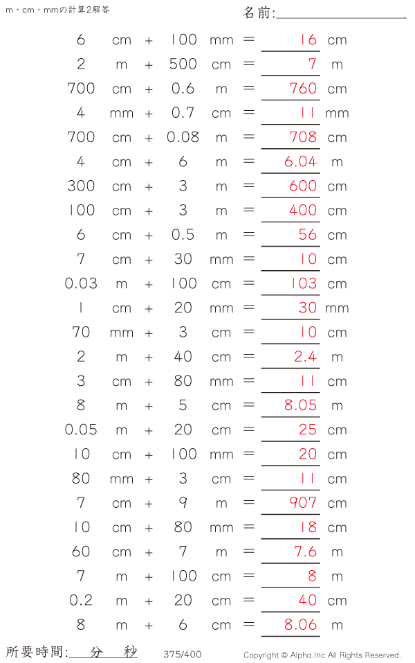 m・cm・mmの足し算2 [解答]375/400