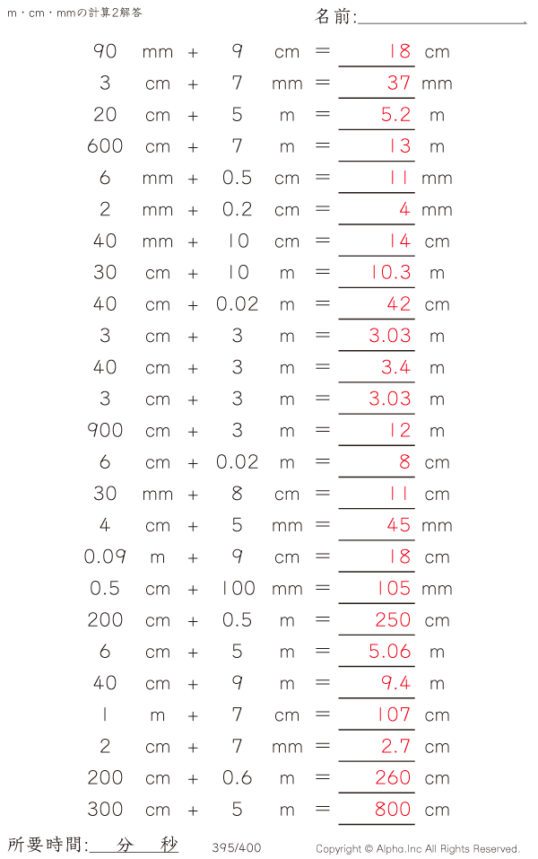 m・cm・mmの足し算2 [解答]395/400
