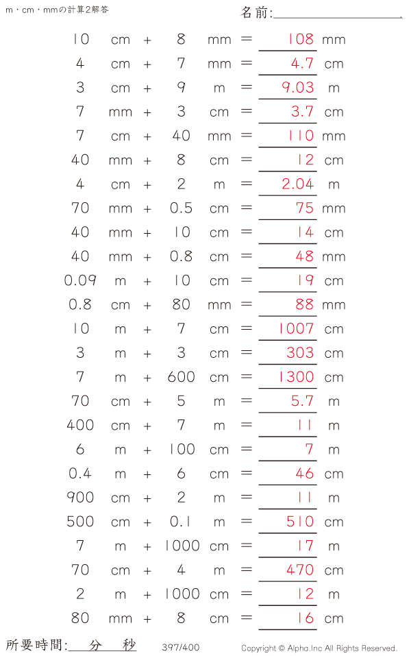 m・cm・mmの足し算2 [解答]397/400