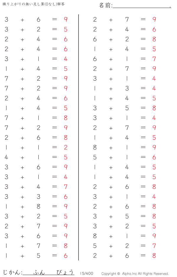 繰り上がりの無い足し算(0なし) [解答]015/400