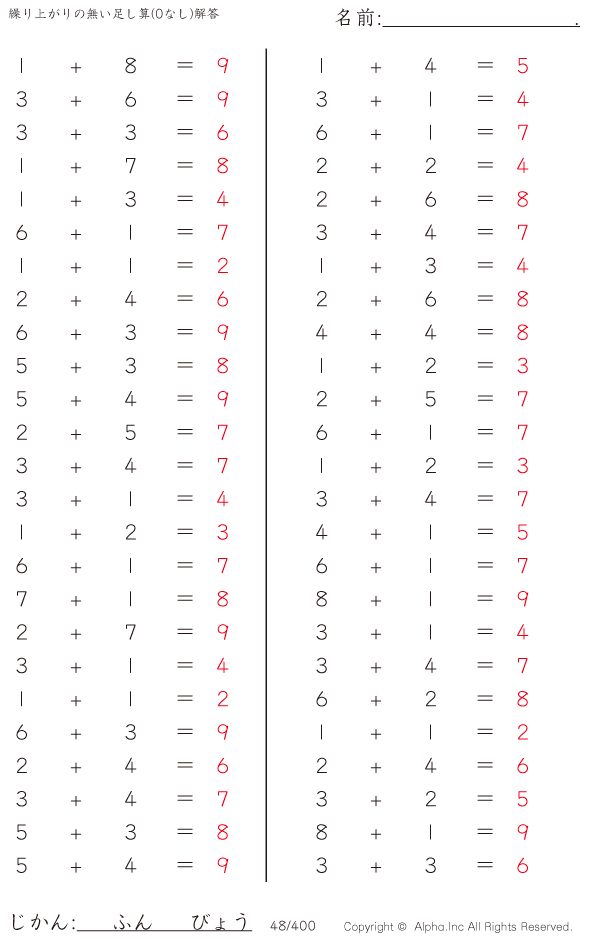 繰り上がりの無い足し算(0なし) [解答]048/400