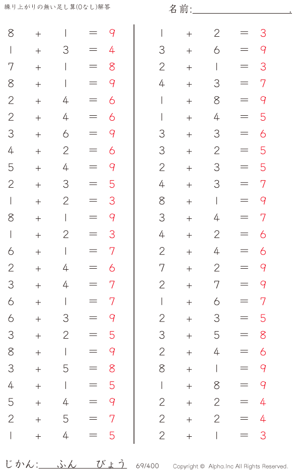 繰り上がりの無い足し算(0なし) [解答]069/400