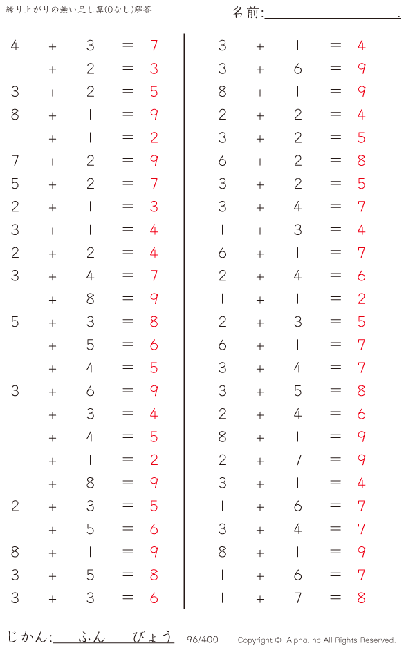 繰り上がりの無い足し算(0なし) [解答]096/400