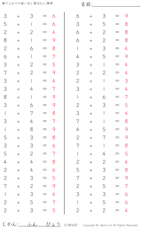 繰り上がりの無い足し算(0なし) [解答]218/400