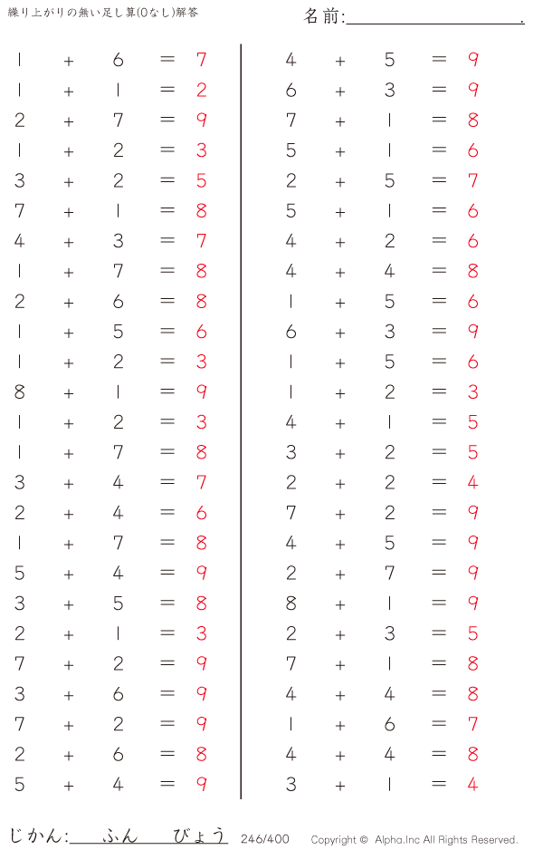 繰り上がりの無い足し算(0なし) [解答]246/400