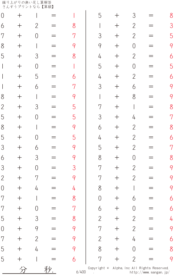 繰り上がりの無い足し算 [解答]006/400
