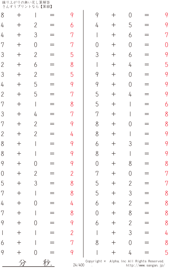 繰り上がりの無い足し算 [解答]024/400