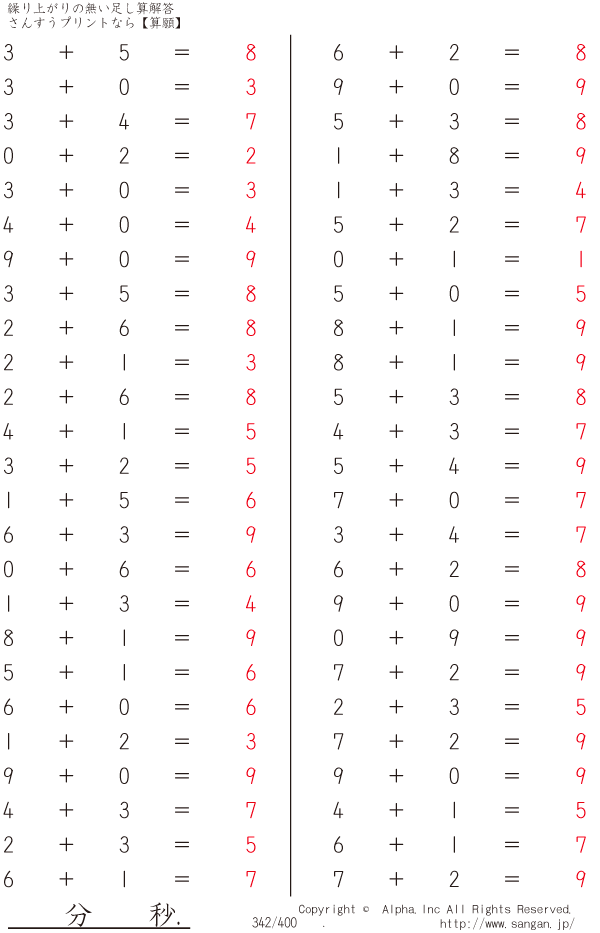 繰り上がりの無い足し算 [解答]342/400