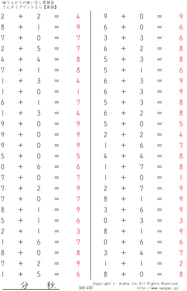 繰り上がりの無い足し算 [解答]368/400
