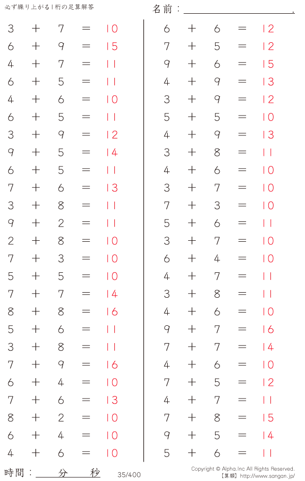 必ず繰り上がる1桁の足算 [解答]035/400