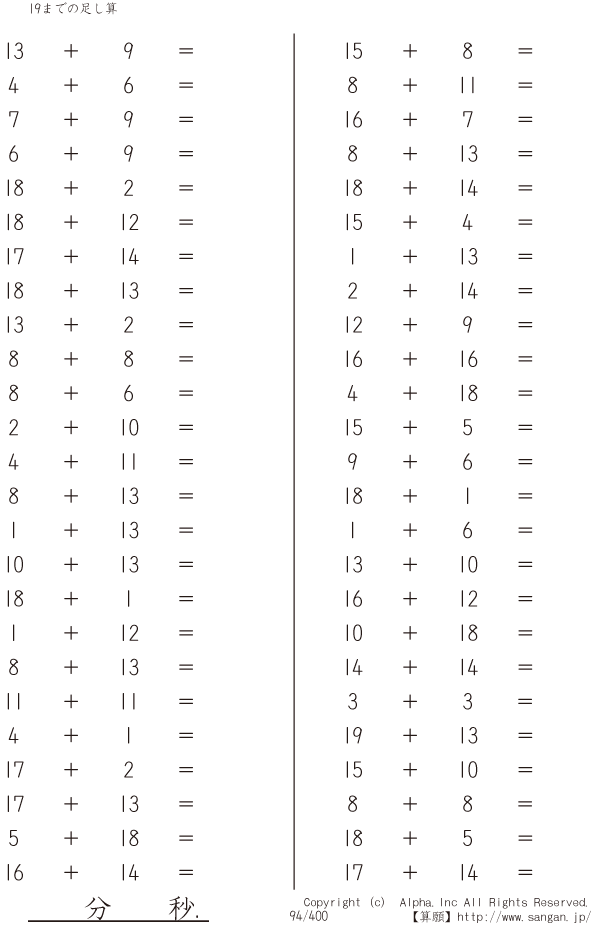19までの足し算 [問題]094/400