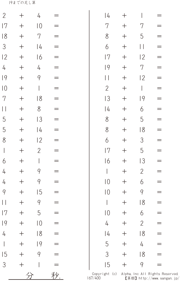 19までの足し算 [問題]167/400