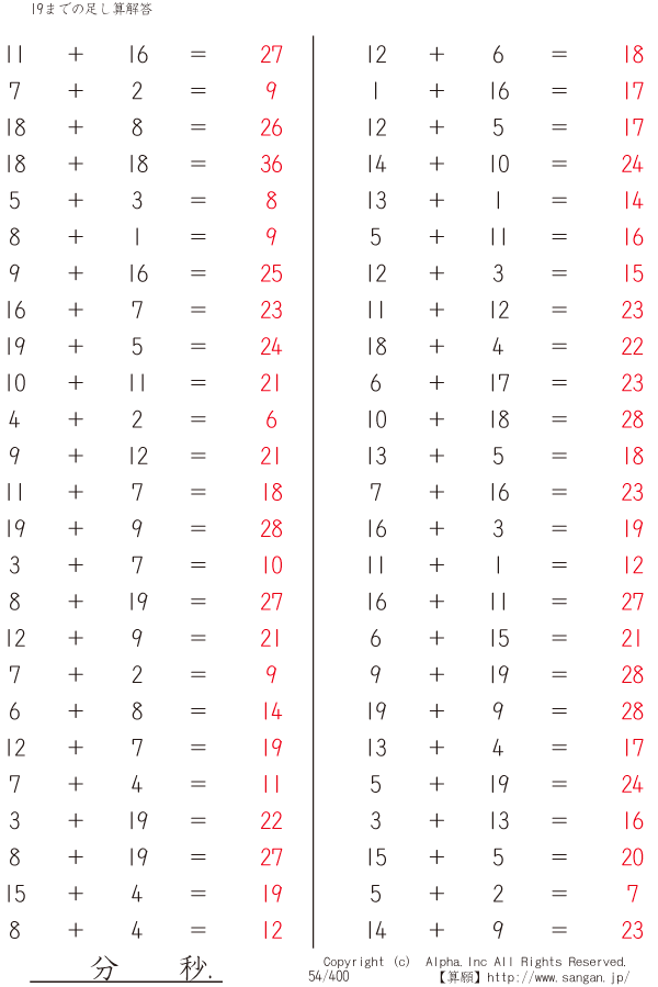 19までの足し算 [解答]054/400