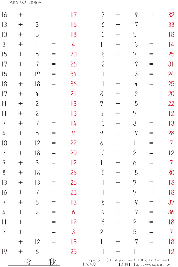 19までの足し算 [解答]117/400