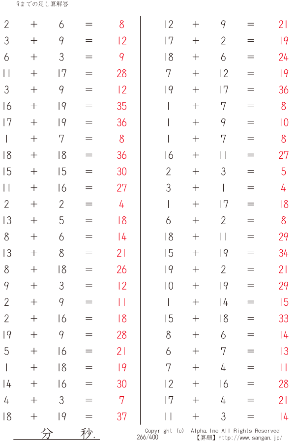19までの足し算 [解答]266/400