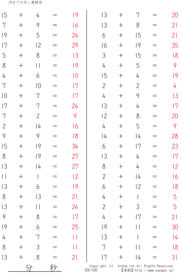 19までの足し算 [解答]306/400