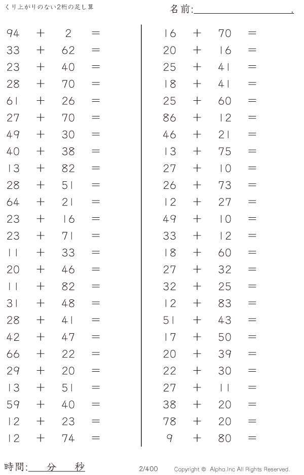 くり上がりのない2桁の足し算 [問題]002/400