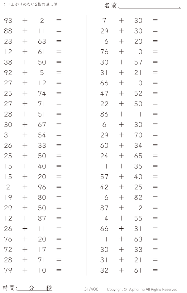 くり上がりのない2桁の足し算 [問題]031/400