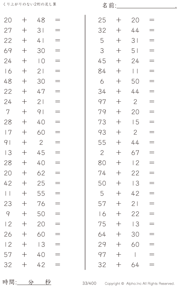 くり上がりのない2桁の足し算 [問題]033/400