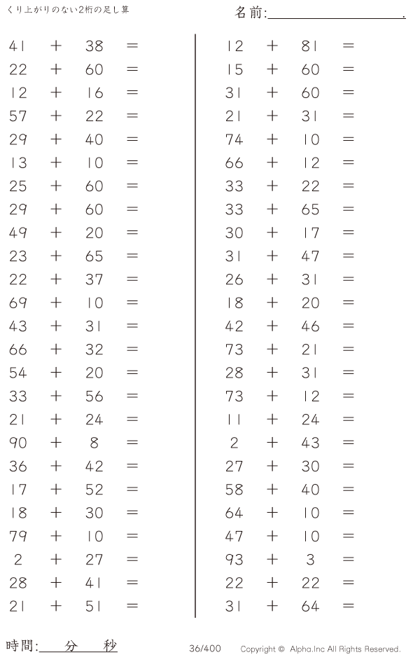くり上がりのない2桁の足し算 [問題]036/400