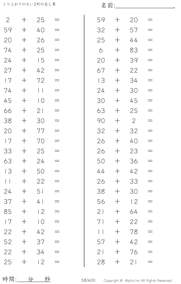 くり上がりのない2桁の足し算 [問題]058/400