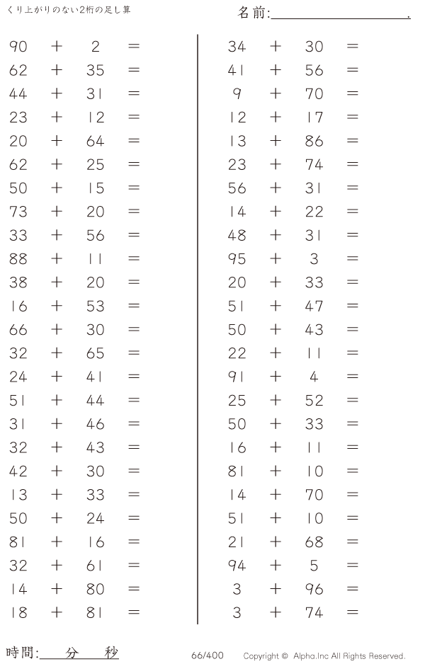 くり上がりのない2桁の足し算 [問題]066/400