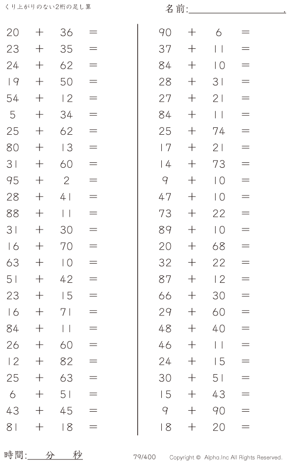 くり上がりのない2桁の足し算 [問題]079/400
