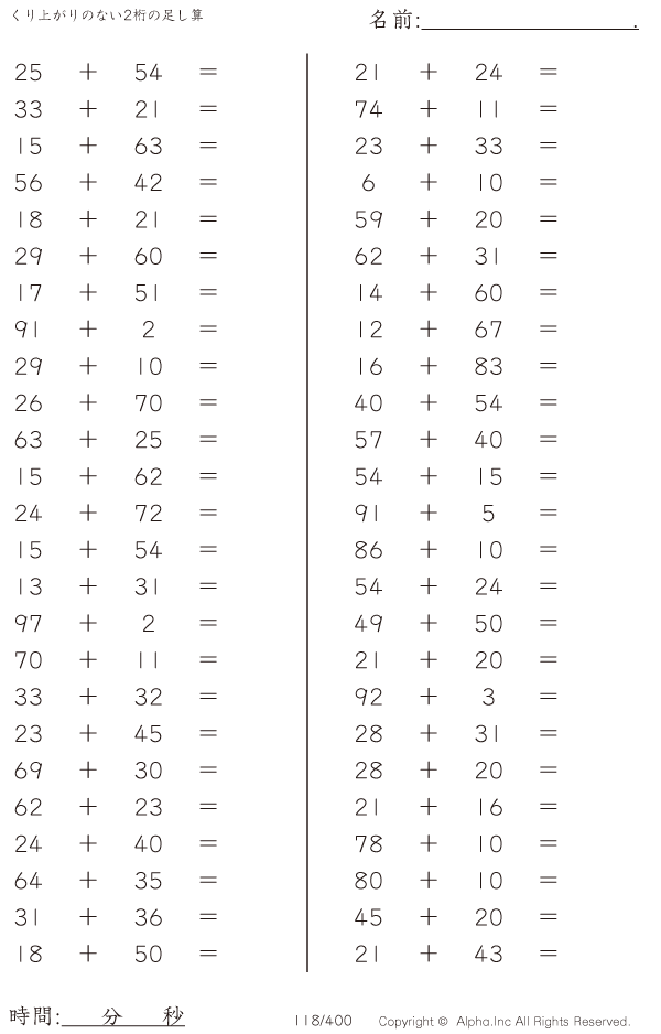くり上がりのない2桁の足し算 [問題]118/400