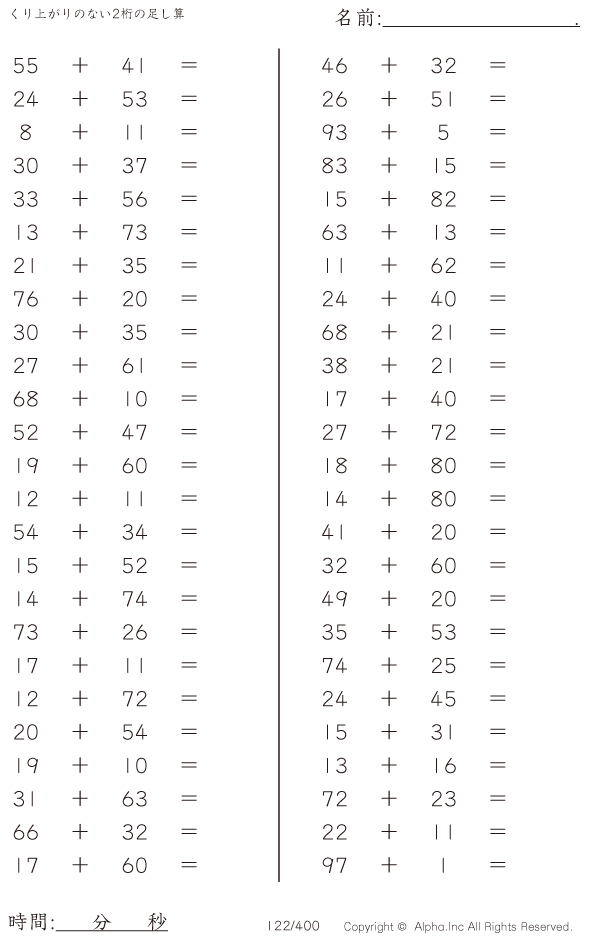 くり上がりのない2桁の足し算 [問題]122/400